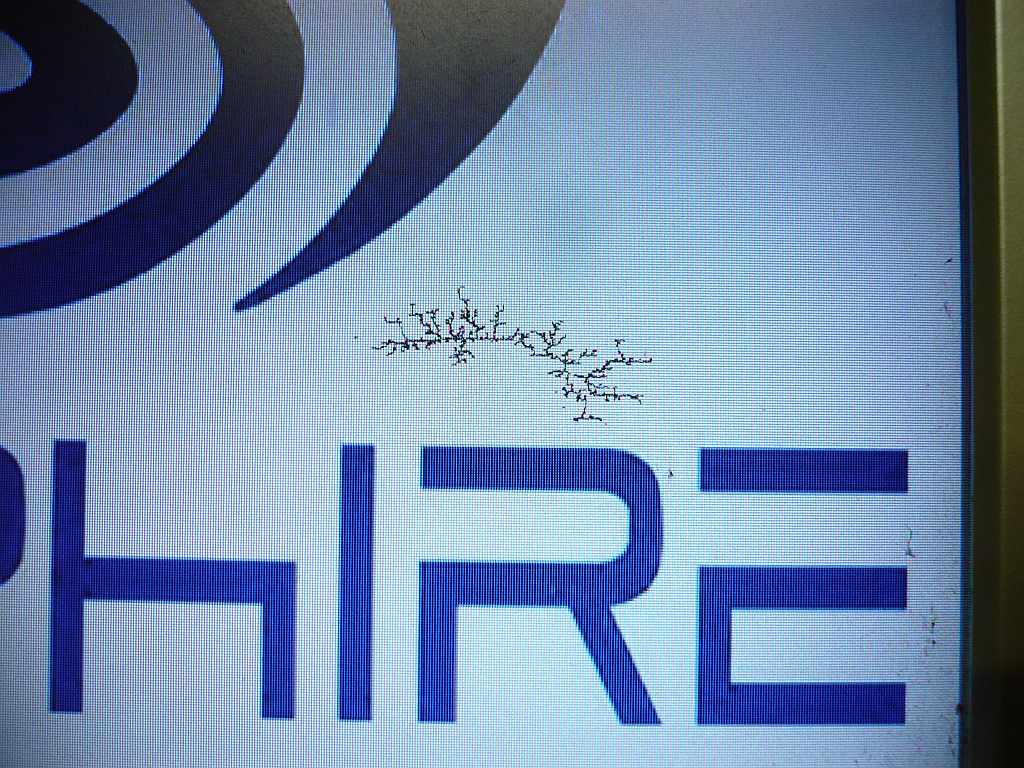 Tak toto som ešte nevidel. Teda v takomto rozsahu. Odhadujem to na nerovné sklo (vypukliny) už vo výrobe, časom sa začalo odlepovať. Alebo tam začala nejaká chemická reakcia v tekutých kryštáloch, ktorá sa šírila, produkovala plyn, a ten odlepoval vrstvy od seba. Alebo úplne jednoducho niekto nechal displej niekde v horúčave, kde sa prehrial až sa začali odparovať kryštály.