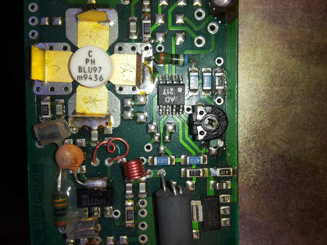 Na desce KS vysílače je krom VF trandů smd IO 2x4 nohy s trimrem který evidentně slouží pro nastavení klidového proudu trandů. Je na něm AD 217. Nic víc netuší někdo, co to je za IO?