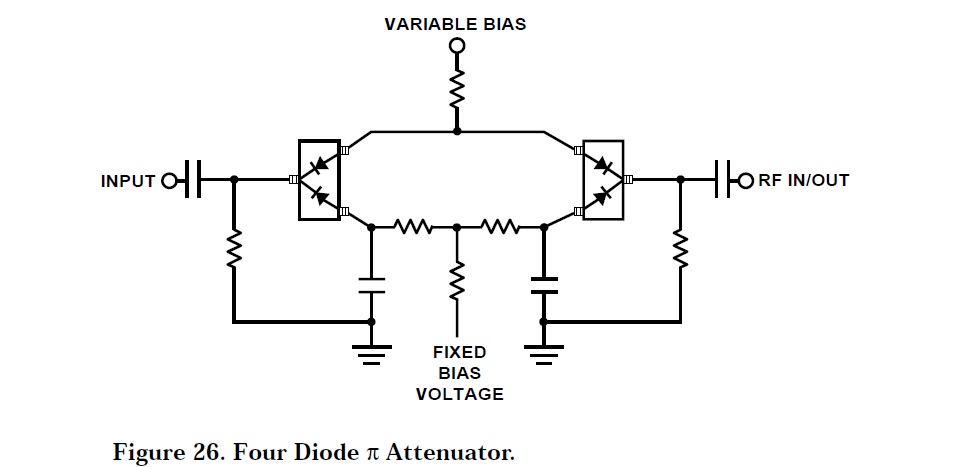 Tak jsem ještě něco kolem těch PIN diod pohledal , jednoduché řešení nabízí čtveřice BAP85Q ( 300 kHz až 4 GHz) . Ovšem o impedančním přizpůsobení ani slovo v katalogu, tj. tak jak jsem si myslel , neřeší to a prostě útlum je součtem ztrát /útlumu v atenuátoru + ztráty nepřizpůsobením. Tím pádem tedy zapojit to někde do kabelů v trase signálu nelze , protože útlum bude záviset nejen na proudu diodami, ale i na místě připojení a frekvenci (stojaté vlnění) . Není asi nad klasický útlumový odporový pí nebo T článek ( neřeším GHz) , tam se není nutné