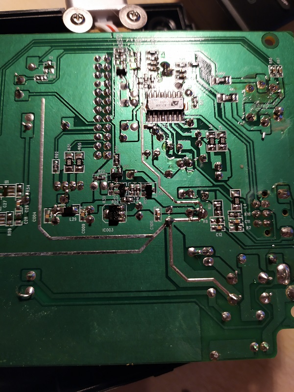 Koncový zesilovač je ze strany spojů. Je to APA2068 (Anpec electronics corporation). Má 2x 8 noh. Ze strany součástek ten 2x4nohovej šváb vedle "Kino4"je nějaký podpůrný šváb DAB/FM modulu Venice ( FS0244). Asi nějaká paměť
