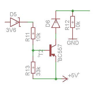 Postúpil som. R11 som dal 5k a R13 2k2, vyzerá to zasa funkčne. Tých 10k je už totiž v doske na neprístupnom mieste (aj tranzistor), tým sa moc nedá hýbať, tak som pridal 10k paralelne. S log.0 som samozrejme počítal že je od 0 do 0,5V (mala by byť do 0,8V), a napájanie tiež môže kolísať od 4,75 do 5,25V. 3,6V zenerku som počítal ako 3,3V, tam sa to líši podľa prechádzajúceho prúdu. Inak na tomto tranzistore E-B je úbytok 0,63V.