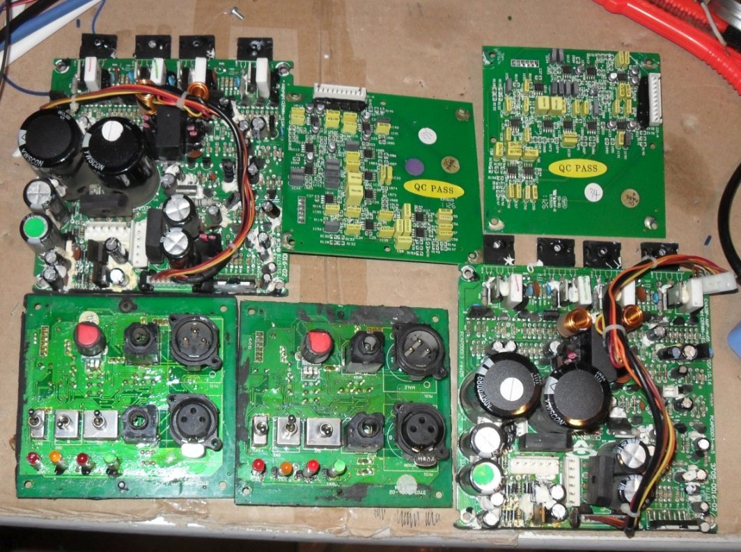 Nabízím 3 sady zesilovačů ( na fotografii jsou 2 sady ) + další DPS z aktivních reprosoustav