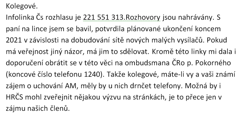a) to že státofirma ČRo zruší AM, ještě neznamená že fízlové z odposlechu nepojedou po černotách jak slepice po flusu. Možná o to víc.