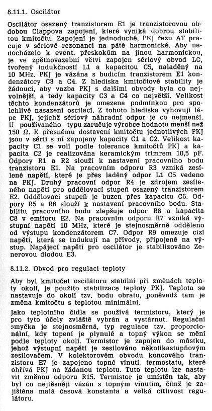 Aby byl kmitočet oscilátoru stabilní při změnách teploty okolí, je použito stabilizace teploty PKJ. Teplota se nastavuje do okolí tzv. bodu obratu, poněvadž tam je změna kmitočtu s teplotou minimální. Od výrobce požadujeme, aby bod obratu ležel v okolí 60 °C. ...