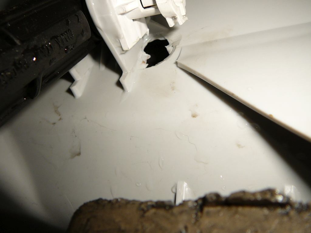 setkal se někdo s takovouto vadou? Známý že jim začala téct pračka. odejmu bočnici a čumím na díru. Zajímalo by mne čím se to mohlo stát ? že by vypadl ten tlumič a prorazil díru do vany a potom se zese vrátil zpět? dá se to zalepit?