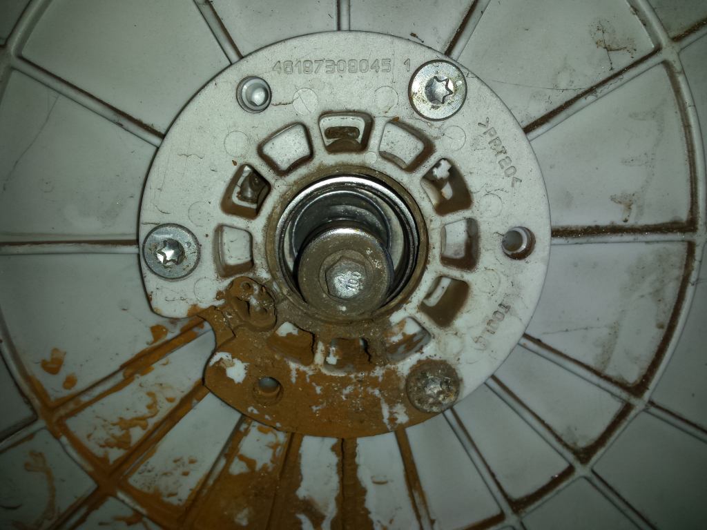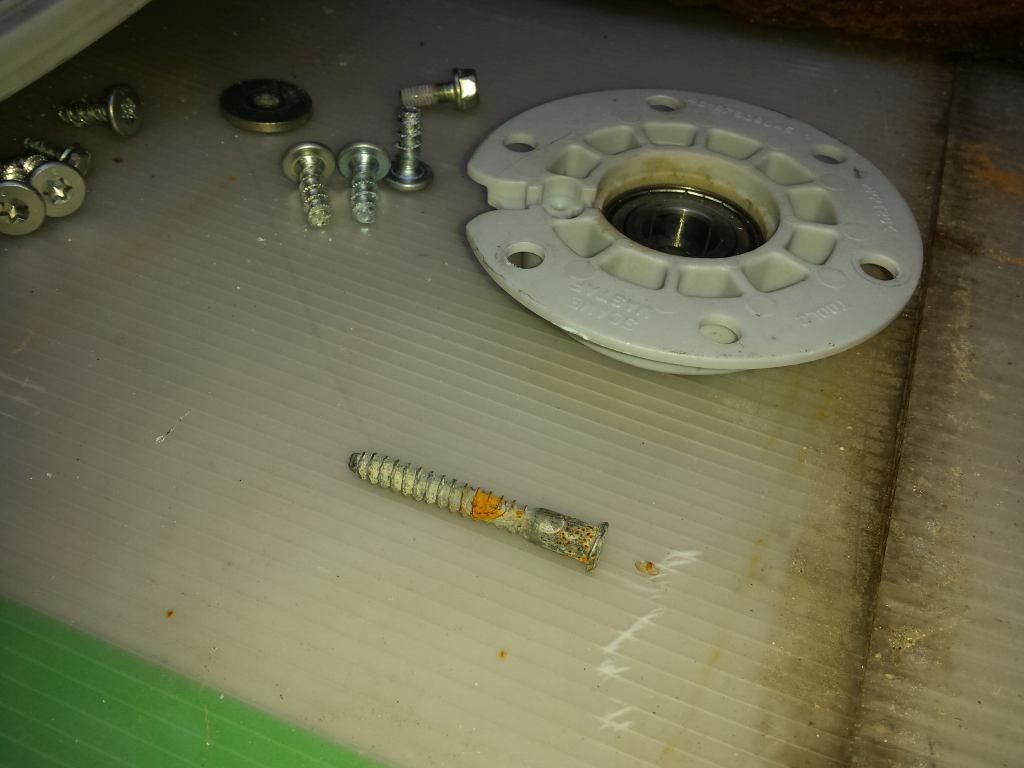 tak se ke mně dostala další pračka od tohoto výrobce. Protože její ložisko již není v nejlepší kondici rozhodl jsem se že vezmu ložiska z toho s tím vadným bubnem. Koukněte co na mne vypadlo. Takový velký vrut. takže záhada vyřešena. pro informaci také přikládám foto toho trochu horšího ložiska (šmatlá asi 2cm a kolem něj teče)