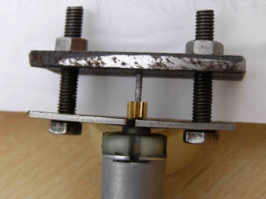 Jde o obvyklou poruchu všech těchto poddimenzovaných motorků zámků. Kontakt uhlík na komutátor. (je to kurvítko) Nejhorší je se k uhlíkům dostat. Výrobce dělá vše proto, aby se ti to nepodařilo. Na obrázku je přípravek, jak stáhnout pastorek. Jde o nerezovou pasovinku 2 x 30 mm. (je tvrdá, ale jde snadno vrtat) ,pasovinu 5 x 30mm s ocelovým čepem 1,8 mm, a dva štouby M6. Pastorek musíš asi o 1mm odpilovat, aby se nerezový pásek vešel mezi pastorek a štít motoru. Upnout do světáku, aby se to neprohýbalo a pastorek je dole. Pozor ať ti nespadne motorek na zem. Pertl na motorku odřízni lupenkovou pilkou nebo ubruš modelářskou miniflexou. Označ si polohu.Vyndej rotor, hodinářským šroubovákem opatrně nadzdvyhni uhlíky a stáhni štít. Odtlač plastovou podložku před komutátorem, oštípej ji kleštičkami na nehty a zapiluj na průměr asi 3mm. (to abys nemusel napružené uhlíky přehazovat přes velký průměr při zpětné montáži) Komutátor očisti šmirglem 600 a vylešti stejným proužkem šmirglu, který jsi přetáhnul přes brousek. System opravy lze použít i ostatních motorků zámků dveří koncernu. Štít s uhlíky upni do svěráčku a jedním šroubovákem odtáhni uhlík a druhý napruž. Pak to prostřídej. U tohoto modelu motorku je lepší úhlíky nevyndavat. Koleduješ si o zničení. I tak to napružíš docela dobře. Smontuj vše zpět. Uhlíky nahodíš na komutátor jehlou. Otevři svěrák a natáhni pastorek zpět,tak aby osička byla asi 0,3 mm schovaná. Pertl na motorku nijak neřeším, vše udrží krabička