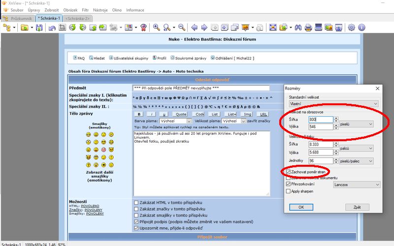 Dík za snahu. Asi jsem to vyřešil. Oříznul jsem na foťáku rozlišení. Dělá to fotku cca 300kb v režimu MACRO. V linux programu GIMP to oříznu na 100kb (níž je blbá čitelnost). Otevřu v Xviewer linux a teď ...vyber vše- kopíruj- vložit. Tak by to mělo jít přiložit pod text a celá editace proběhne pod linuxem. Vyzkouším to na příštím příspěvku. Sice mě to někdy komplikuje život ale nesnáším Windows. Ty neustálé hlášky a protesty systemu, sledování co dělam. NE.