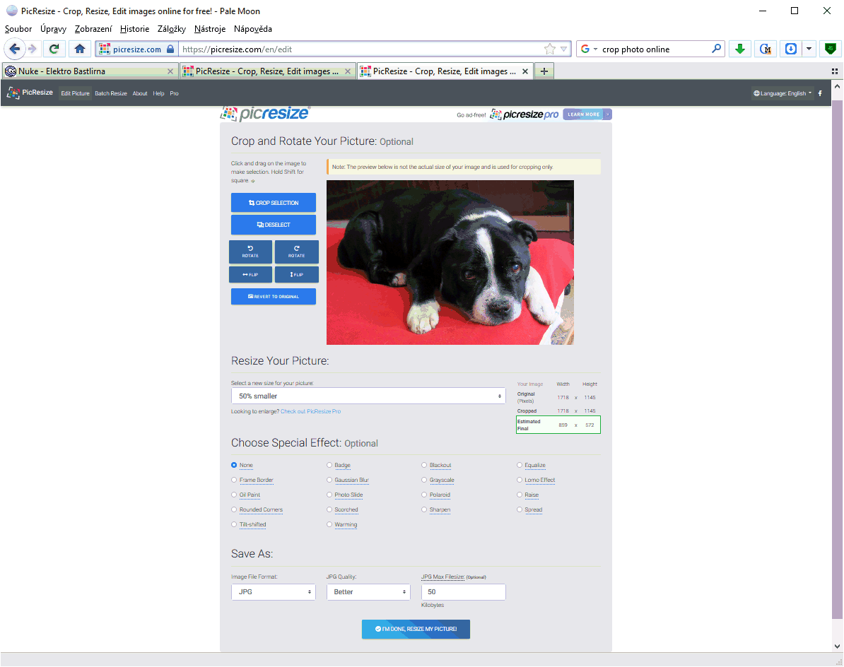 Pro jednoduché úpravy a zmenšení velikosti lze použít některý z on-line nástrojů. Velmi jednoduchý je např. tento.