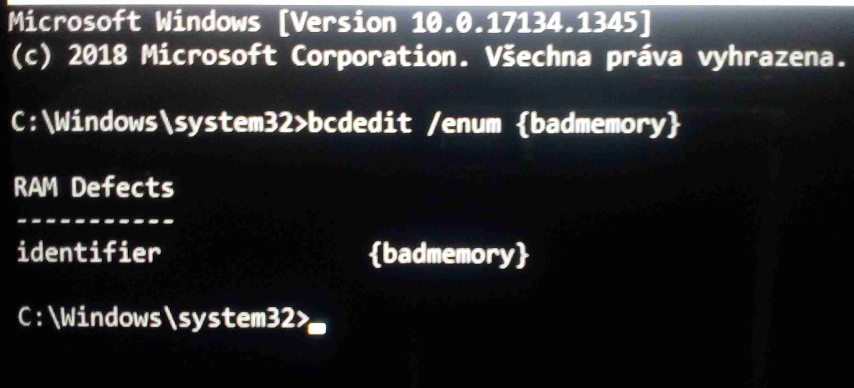 Jestli jsem to dobře pochopil tak windows si poznamenává chybný bloky paměti, aby do nich už nezapisoval. Podle návodu jsem si je nechal příkazem vypsat - nenašel žádný (viz obr. 4), takže není ani co mazat (viz obr. 5).