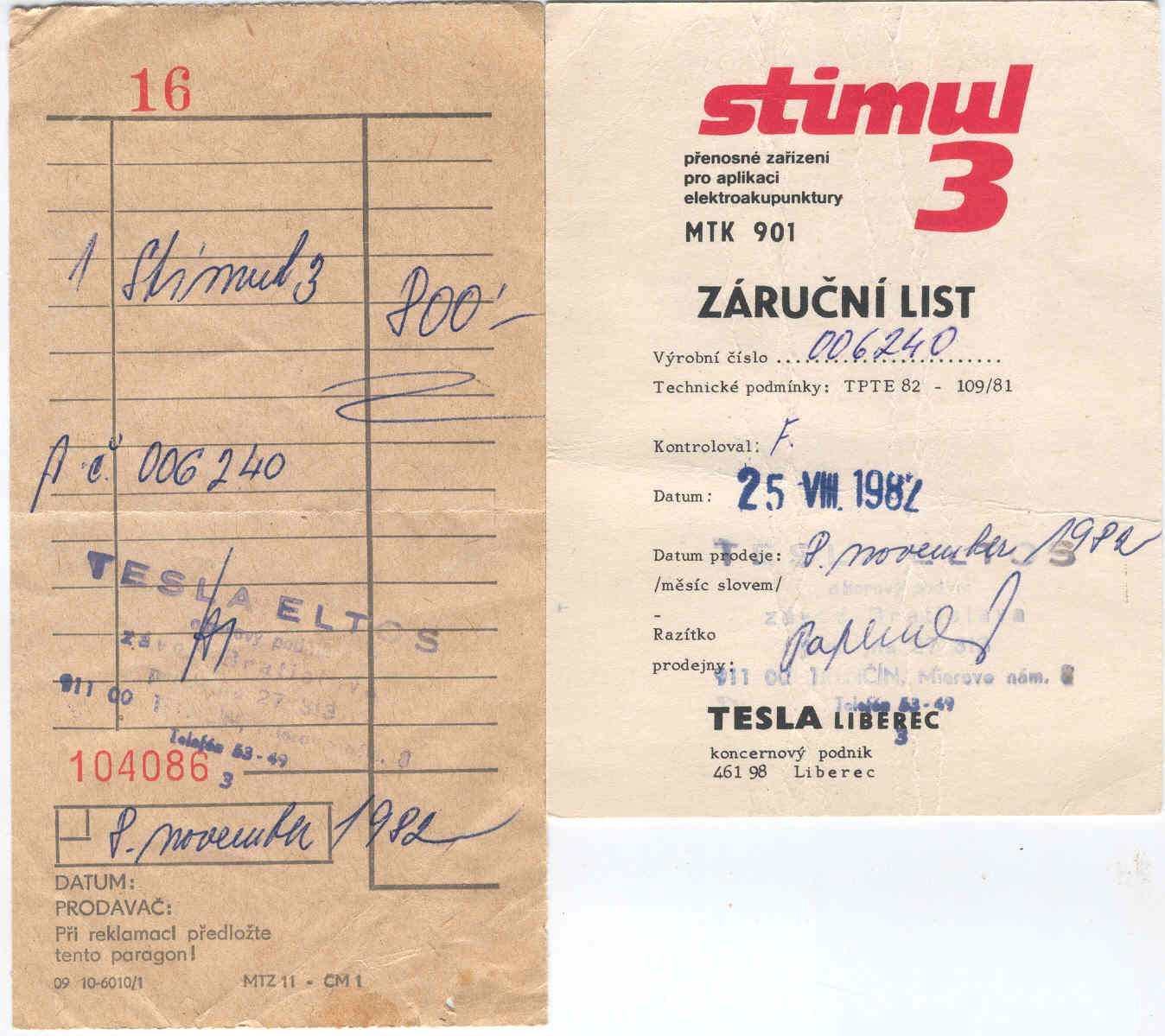 Neni to skôr nabíjač 9V aku, doplnený neskôr v 90. rokoch? Tesla by krížové skrutky v roku 1982 nepoužila a ten plast mi do obdobia tiež nesedí. Naviac pochybujem, že by ESČ v roku 1982 pustilo nebezpečné zariadenie.