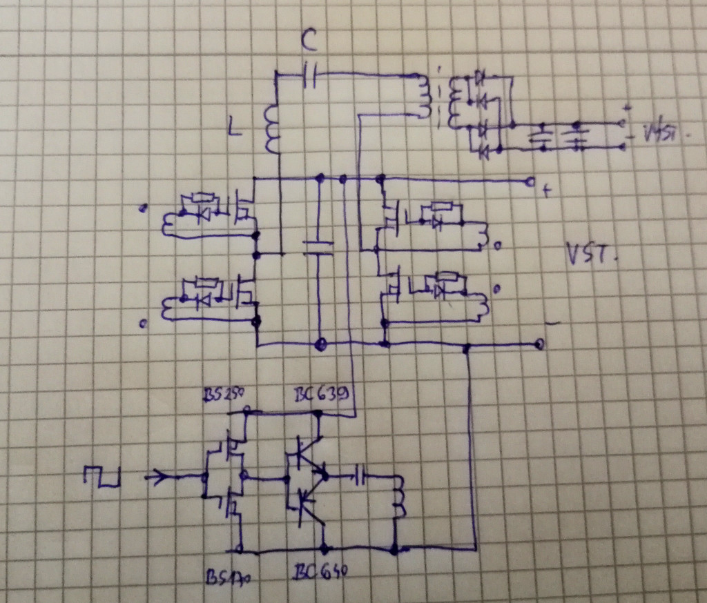 Jen je to u mě bohužel jedniná zatím spolehlivě funkční konstrukce tohohle typu zdroje a při transformaci z malýho napětí okolo 15V (solár) na 330V je most na primární straně tak trochu nepraktický.
