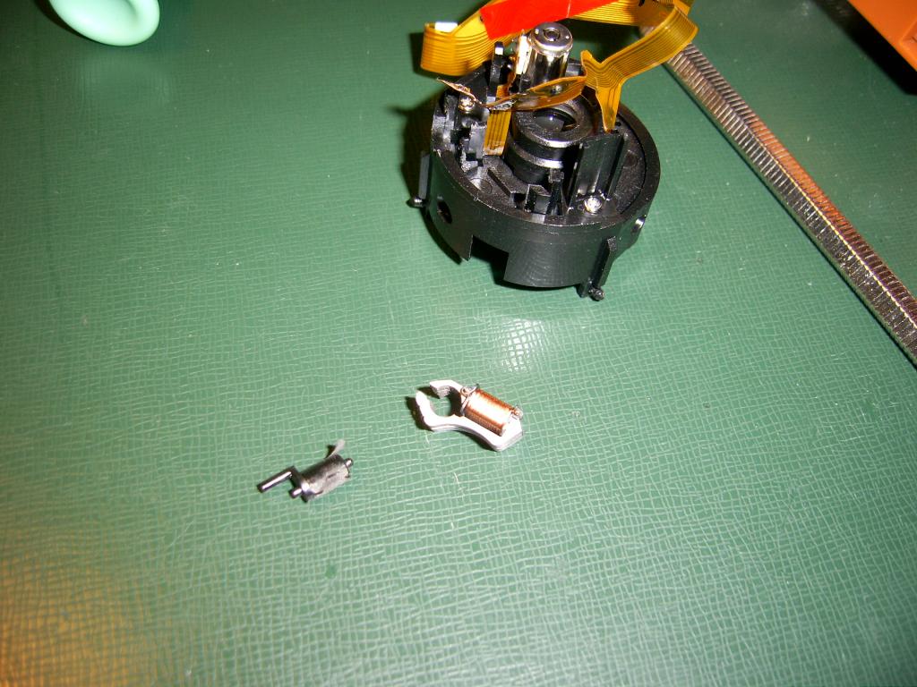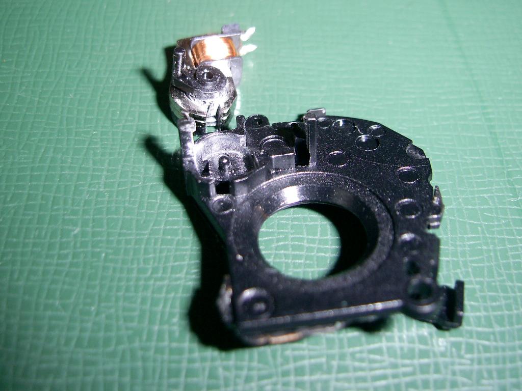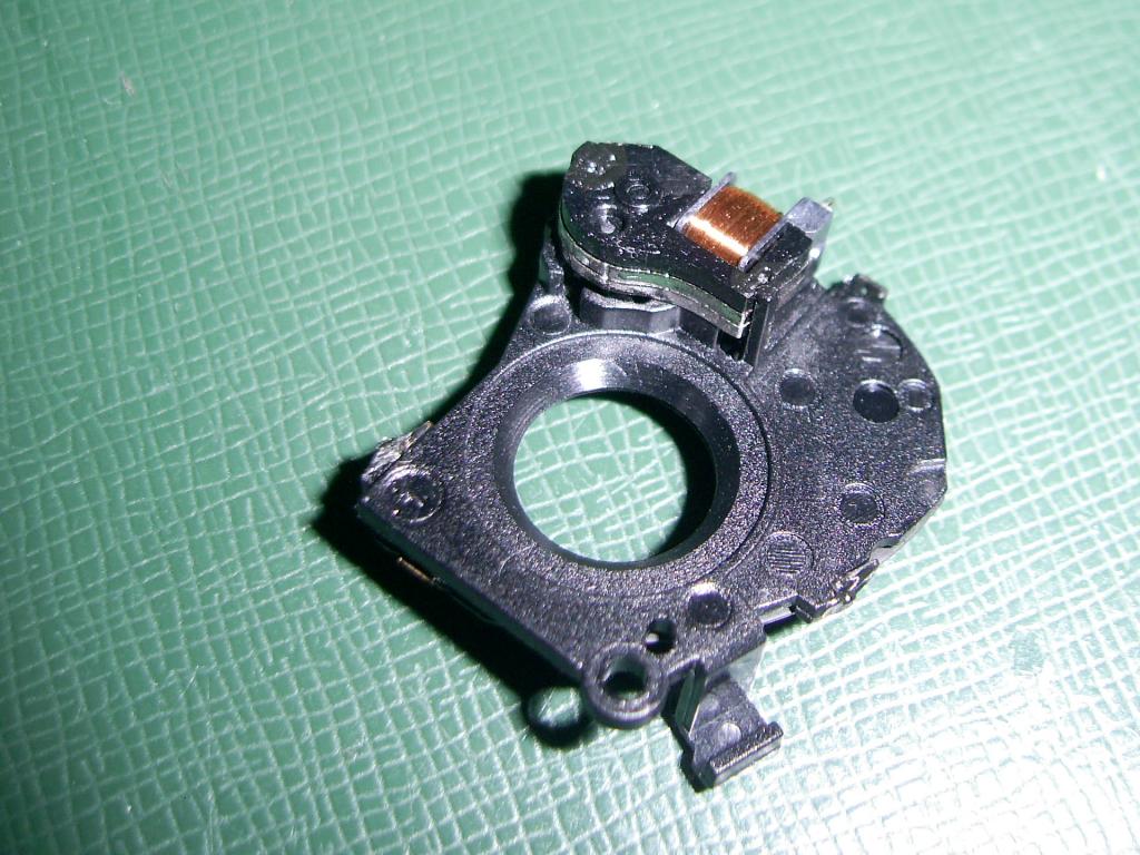 Nasledne mi napadlo rozobrat aj mechanizmus pre zavierku - je velmi podobny, akurat trochu vacsi (silnejsi). A ma aj rovnaky problem! Povrch magnetu este uplne neodpadol, ale sposoboval uz drhnutie. Opravil som ho rovnakym sposobom a zavierka chodi lahko a bez drhnutia - uz od 2,7V.