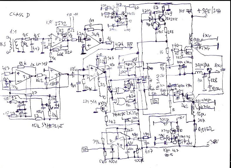 sinclair, ano, leží to tady, jsou tam KD503 serioparalelně, kvazikomplementár a buzení jsou IRF 640, ale už to dneska nemá cenu, tohle je mnohem jednodušší, na celý zesilovač je potřeba 10 PC zdrojů, z toho 4 na součástky pro zesilovač a 6 v sérii jako zdroje.