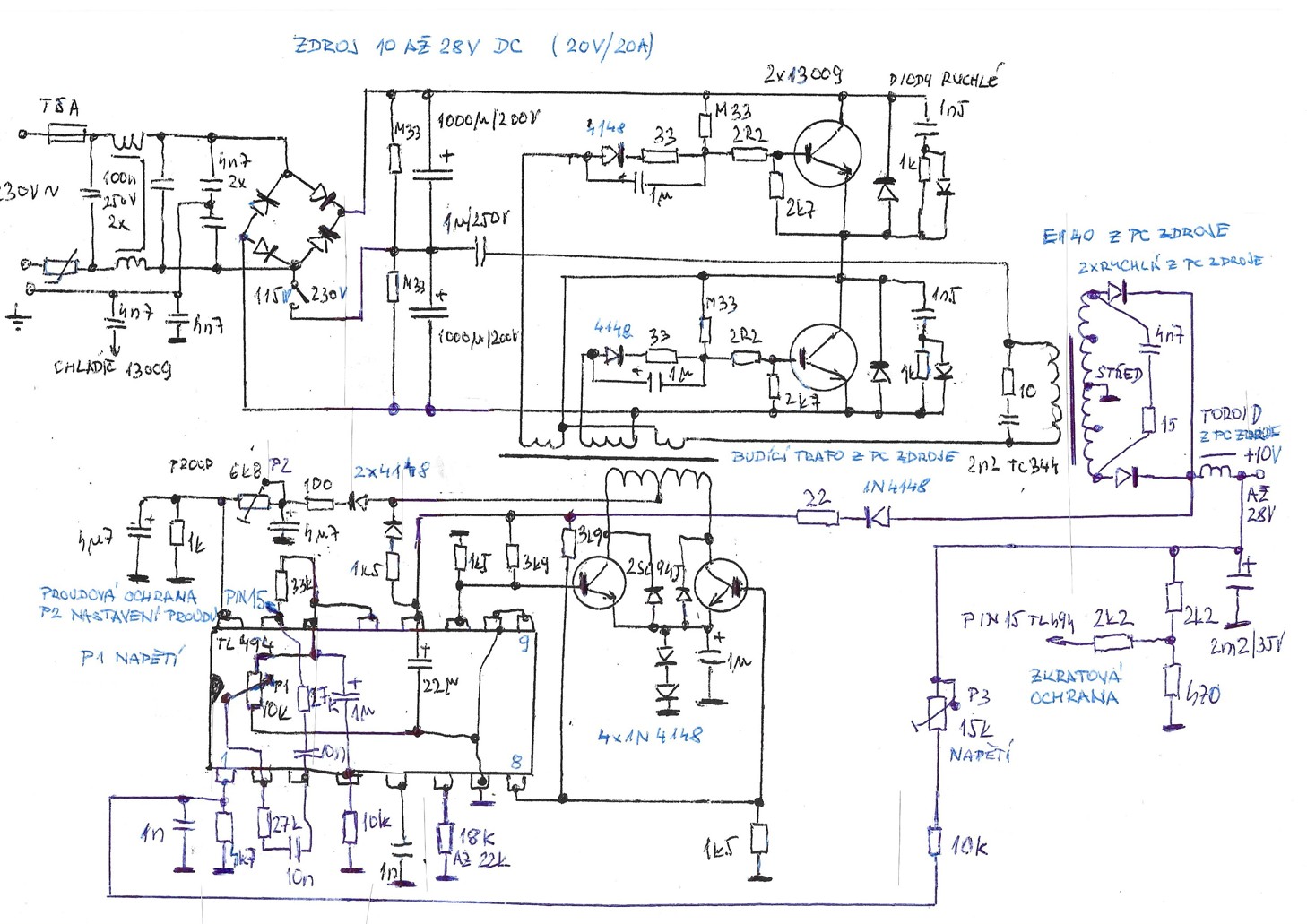 spínaný zdroj ( upravený PC 400W )