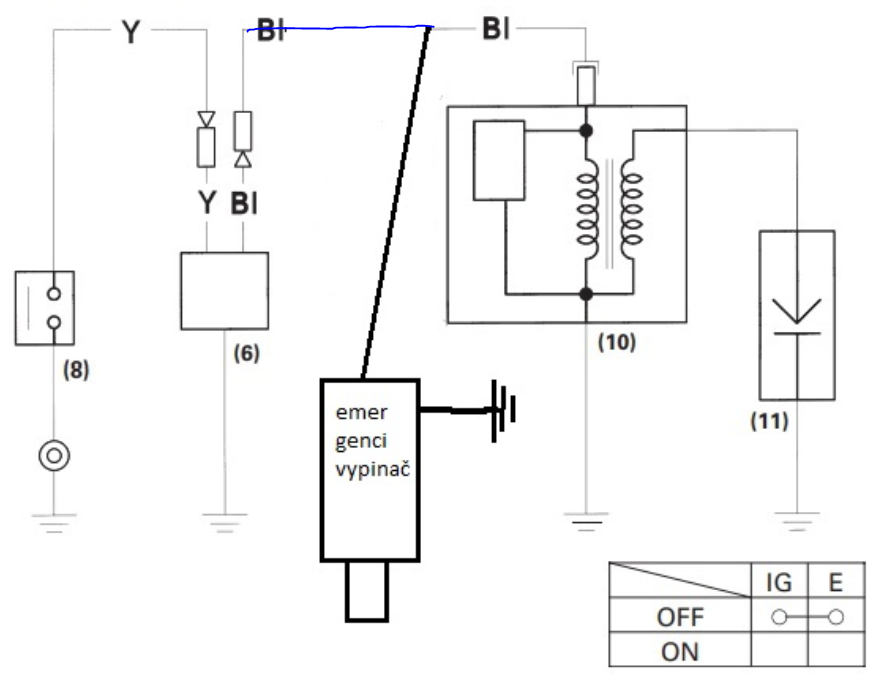 1) ten EMERGENCI spínač je za normálního stavu seplý, nebo rozepnutý (to jde změřit tím nejobyčejnějším multimetrem) ???