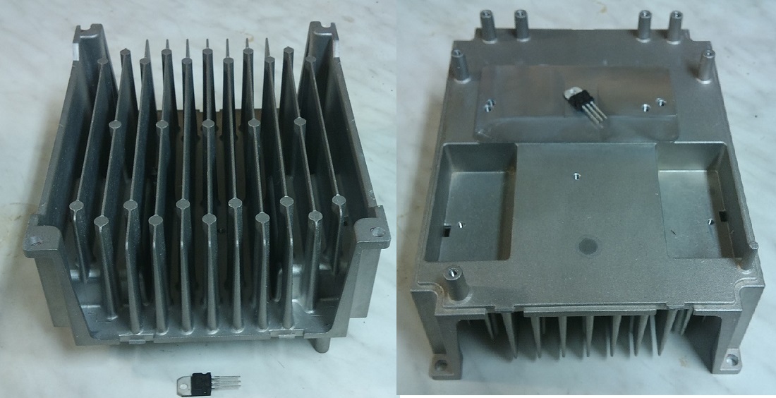 - Větší Al chladič z FM, rozměry zhruba 18 x 14,5 x 6 cm, váha cca 1350 g, vhodný na hrátky s většími výkony. Cena 150,-