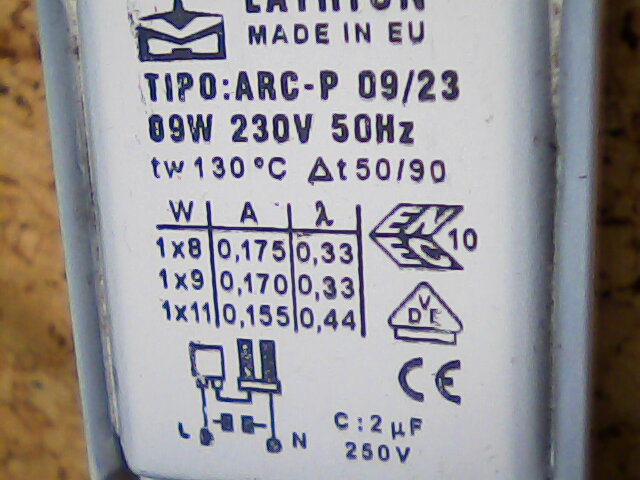 Ako pritvrdiť predradník s tým, čo je doma. Kondenzátor paralelne asi nie, lebo fázový posun a sčítavanie vektorov. Transformátory majú indukčnosti priveľké. Možno na niečo prídem. Má to ešte čas.
