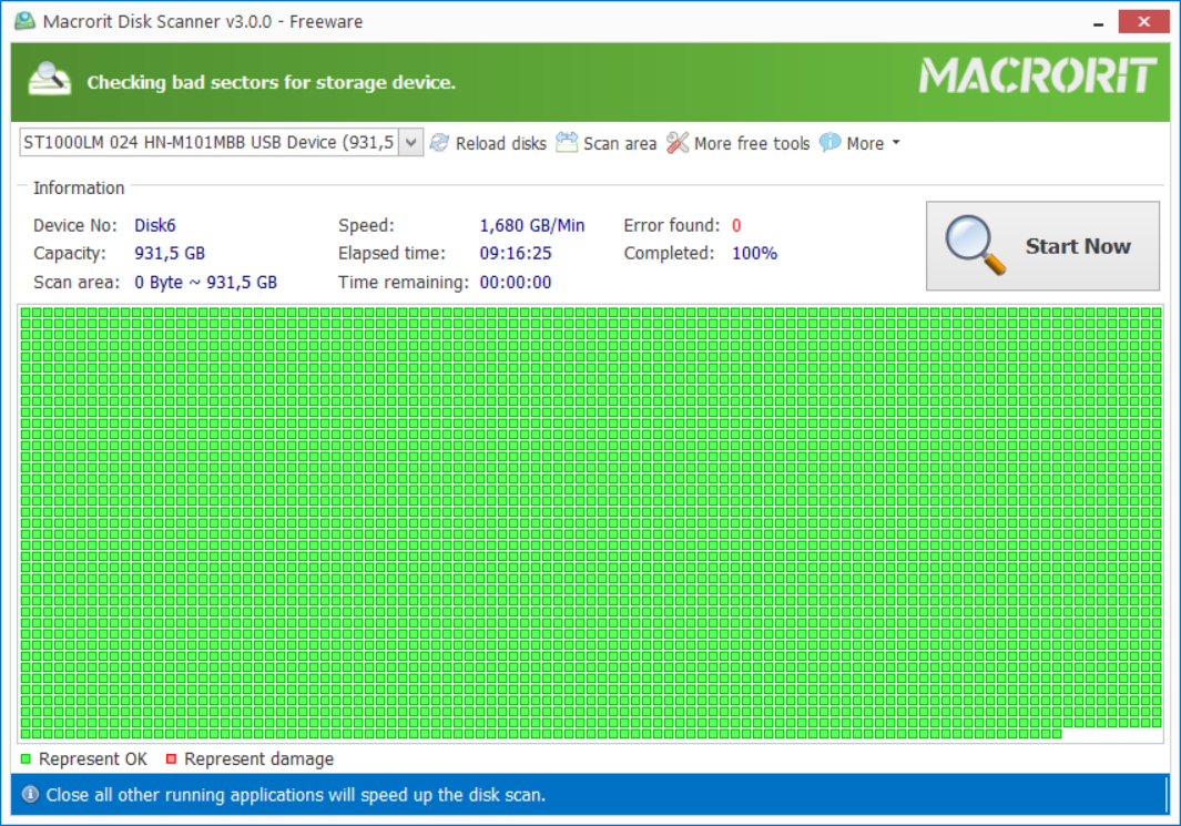 Měl jsem ho připojený do redukce přes USB, proto možná těch 9 hodin. Nechtěl jsem zbytečně nechávat zapnutý velký PC s Windows, tak jsem disk strčil do zkušebního PC s Linuxem a připojil ho na SATA port.