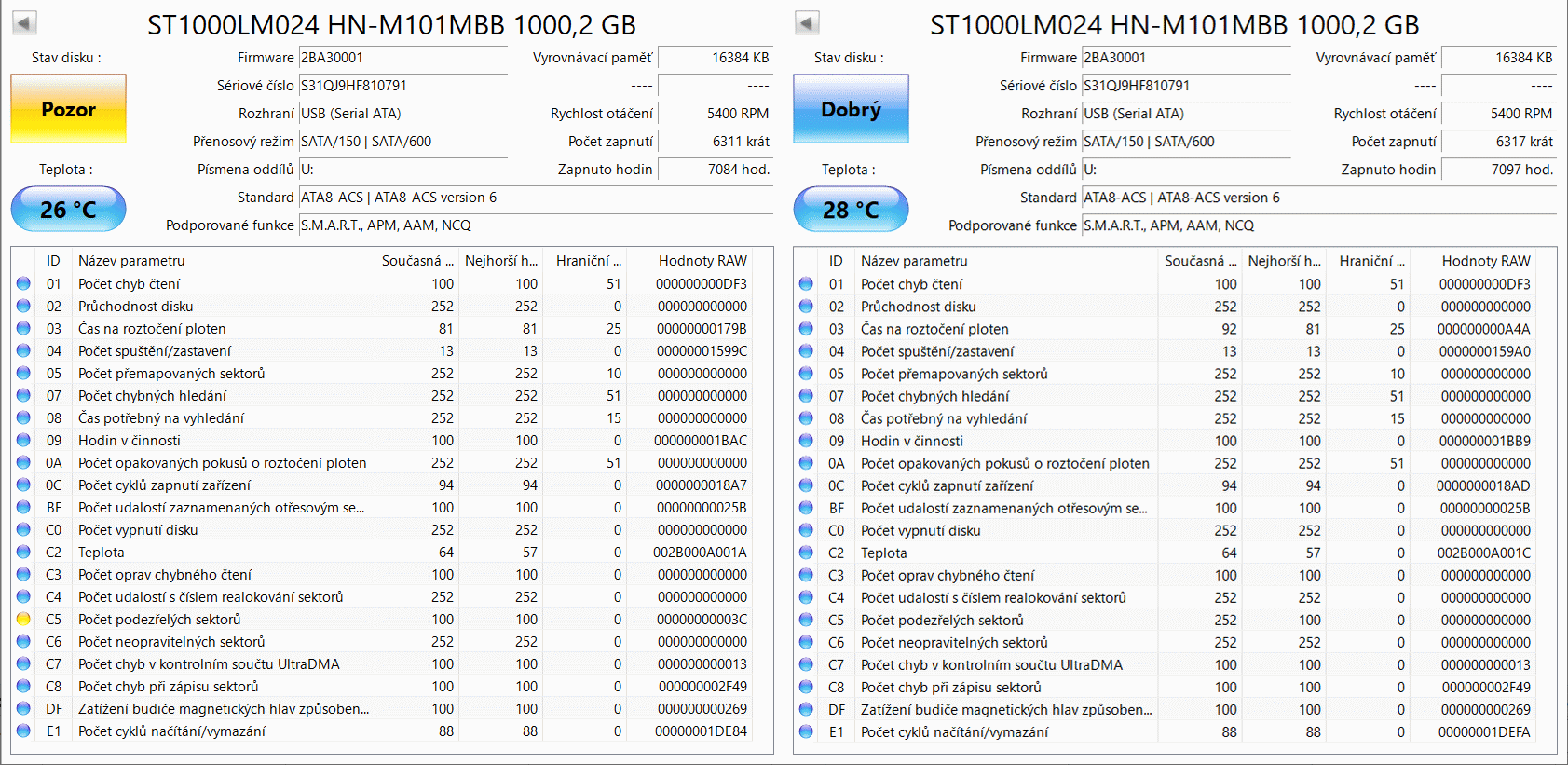 Většinou se pending sectors spíš změní na realocated. Tady holt rozhodl, že jsou OK. Ten samý smart výpis bys měl teď načíst i v tom druhém SW. Přímo, bez hodin trápení disku.