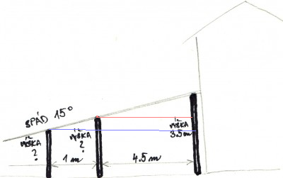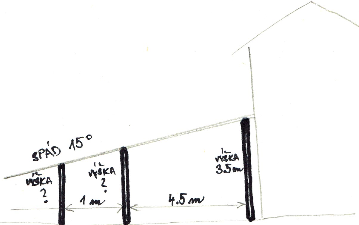Zdravím, omlouvám se za OT ale potřebuji trochu doučit. Jednoduchý přístřešek s šikmou střechou. Výška u domu je 3.5 m a spád by měl být 15%. Jak vysoko bude druhý konec střechy po 4.5 m? Rád bych znal výpočet, tady plavu Amatérsky bych to nějak odvodil a "vyprovázkoval" ale ... potřebuji tam napasovat vrata a přitom moc nesebrat z výšky stropu.