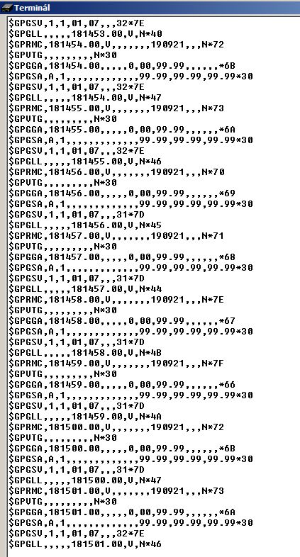 po zapnutí se objeví data na aktivovaném portu v NMEA režimu.