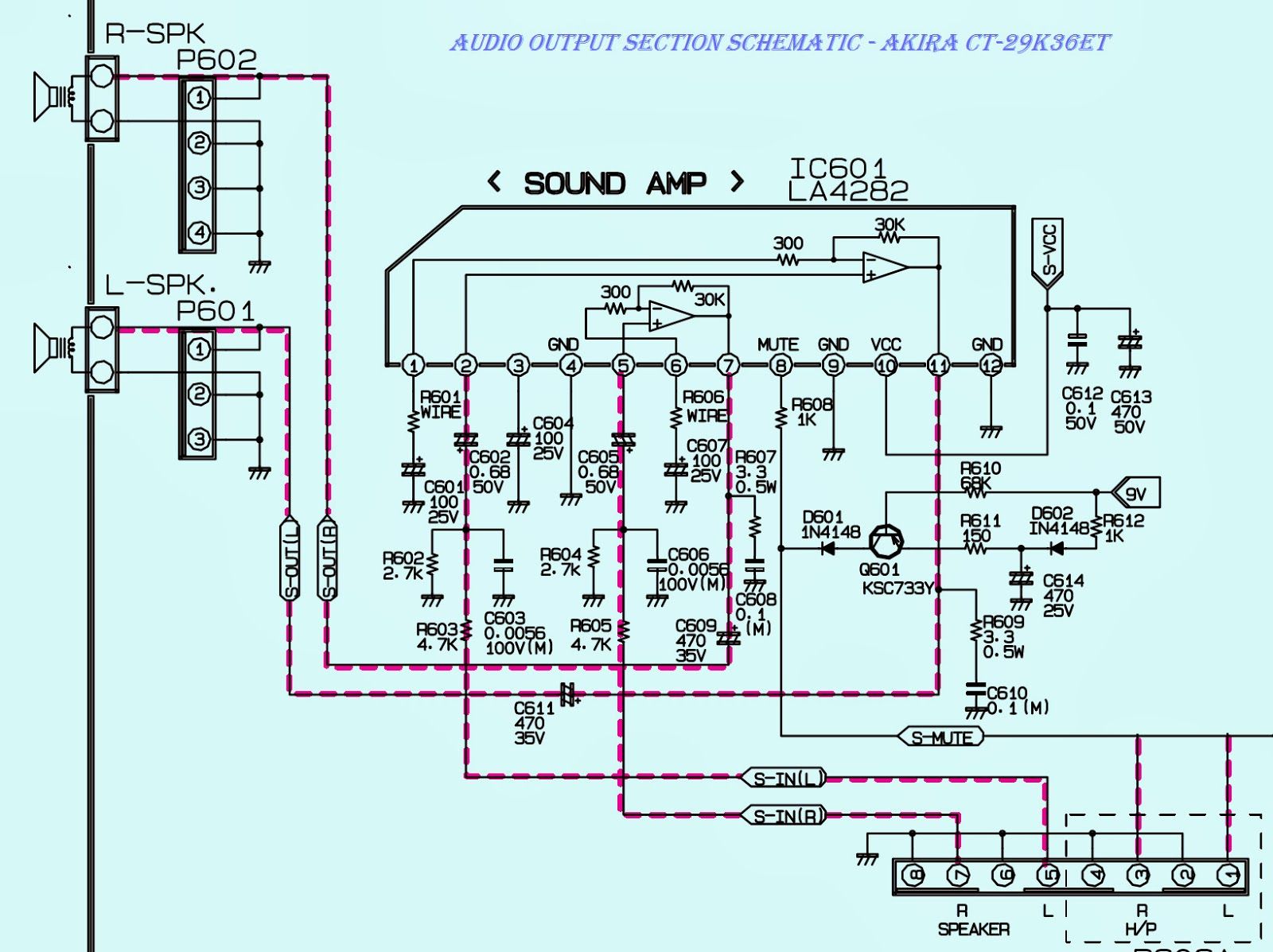 Vyměnil jsem tedy LA4282, měřím, a jsem zase tam, kde jsem byl předtím - na výstupu asi 190mV, odběr cca 10 mA, a samozřejmě nezesiluje.