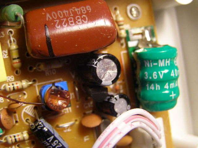 Před týdnem jsem ho dostal mrtvý, kond měl cca 220nF, po výměně za 470n funguje. Záloha je už lithium 40mAh, na nule. Na samolepce datum 8/2005.