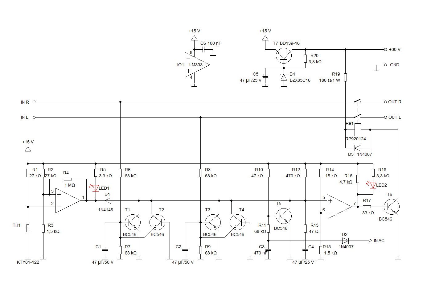 Dělal jsem si ochranu na repráky, je to lehce modifikovaná verze původem ze zesilovače 300 W z AR 5/2002. Na tom zesilovači jsem si ověřil funkci, tak jsem ji postavil zvlášť, jen jsem přidal hlídání i druhýho kanálu, ať se dá použít univerzálně.