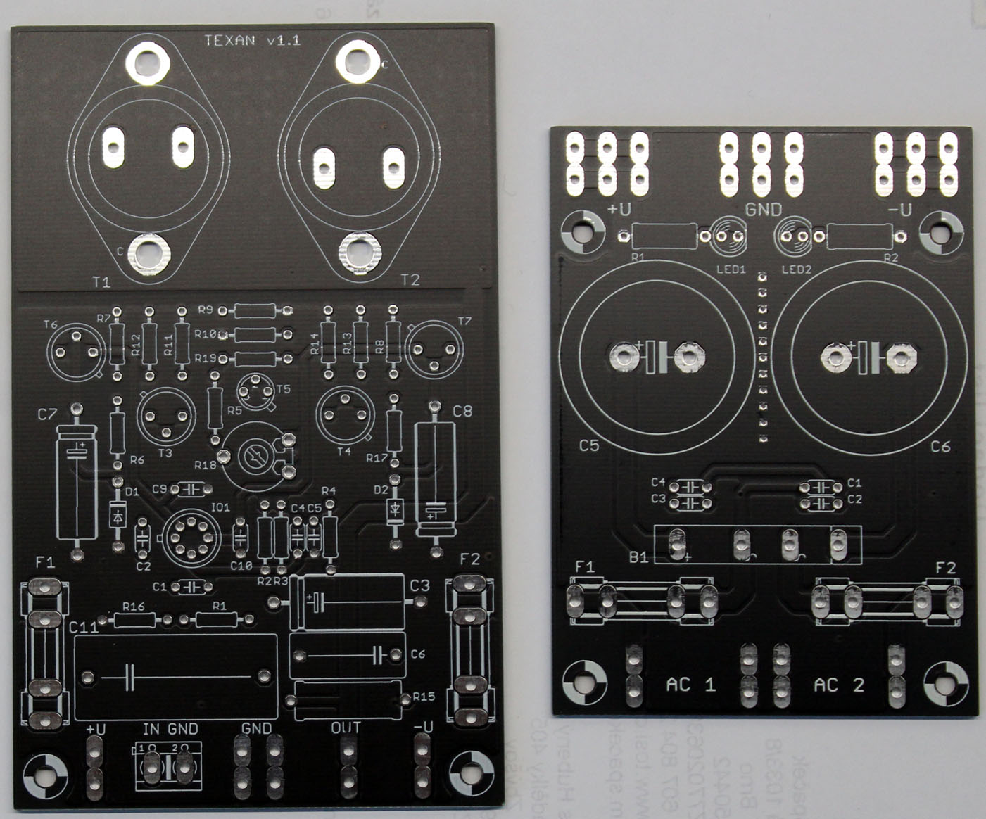 Případně k tomu mám i DPS na symetrický zdroj za 60,- a DPS zesilovače. Moje lehká modifikace Texanu, ale to až to osadím, vyzkouším a oměřím. Snad to nedopadne tak, že to rovnou vyhodím.