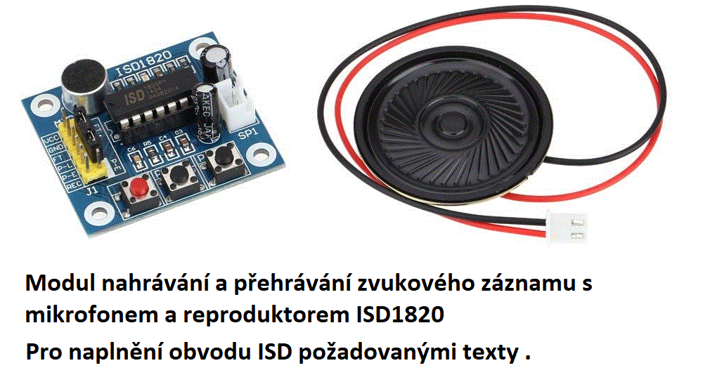 Cena - Celá osazená deska + se 4mi obvody pro záznam zvuku s mikrofonem a reproduktorem 8 ohmu /0.5W a testovacím programem v procesoru včetně vysílače 433MHz - A B C D .