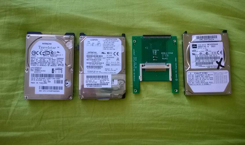 dělal jsem si doma debordelizaci a prodám tři pevné disky do notebooku. 2,5", rozhraní IDE. K tomu je ještě redukce z CF karty na IDE. Jsou mi už na nic, nemám notebook s tímto rozhraním.