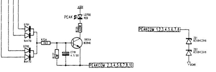 To je super! Mám EPM6, jedná se o toto zapojení ale já bral že E trandu je na GND. Pokud je opravdu podepřený ZD bylo by to vyřešené ještě jednodušeji. Prvně se mi taky zdálo, že by PEAK indikoval na dvou Si přechodech, tj 1,4V jak uvádí i xcs. Po obědě znova rozbalím schéma. Po vyřazení ZD by to mohlo chodit jak si přeju. Dám info. Takže je to tak. PEAKCOM není totéž co COM. Taková schémata mě přivádí k šílenosti. Nakonec jsem ty dvě zenery našel až o několik stránek dál. Jsou dvě, 3,9V, pravděpodobný důvod použití 2ks na toto napětí bude teplotní stabilita. Kdy ZD právě kolem 4V mají nulový teplotní koeficient. Takže uvidíme. Bohužel Soudcraft má tak šikovně řešenou konstrukci že pokud se chceš dostat k DPS, musí dolů všechny hmatníky, matice jacků, šrouby. _________________ ..to bude jen ňákej odpůrek