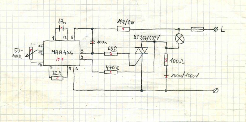 Robil som to podľa priloženej schémy a nerobí to nič, len elektromotor, alebo žiarovka idú stále naplno. Triaky KT 728/600-800V som skúšal asi 4 a stále nič.