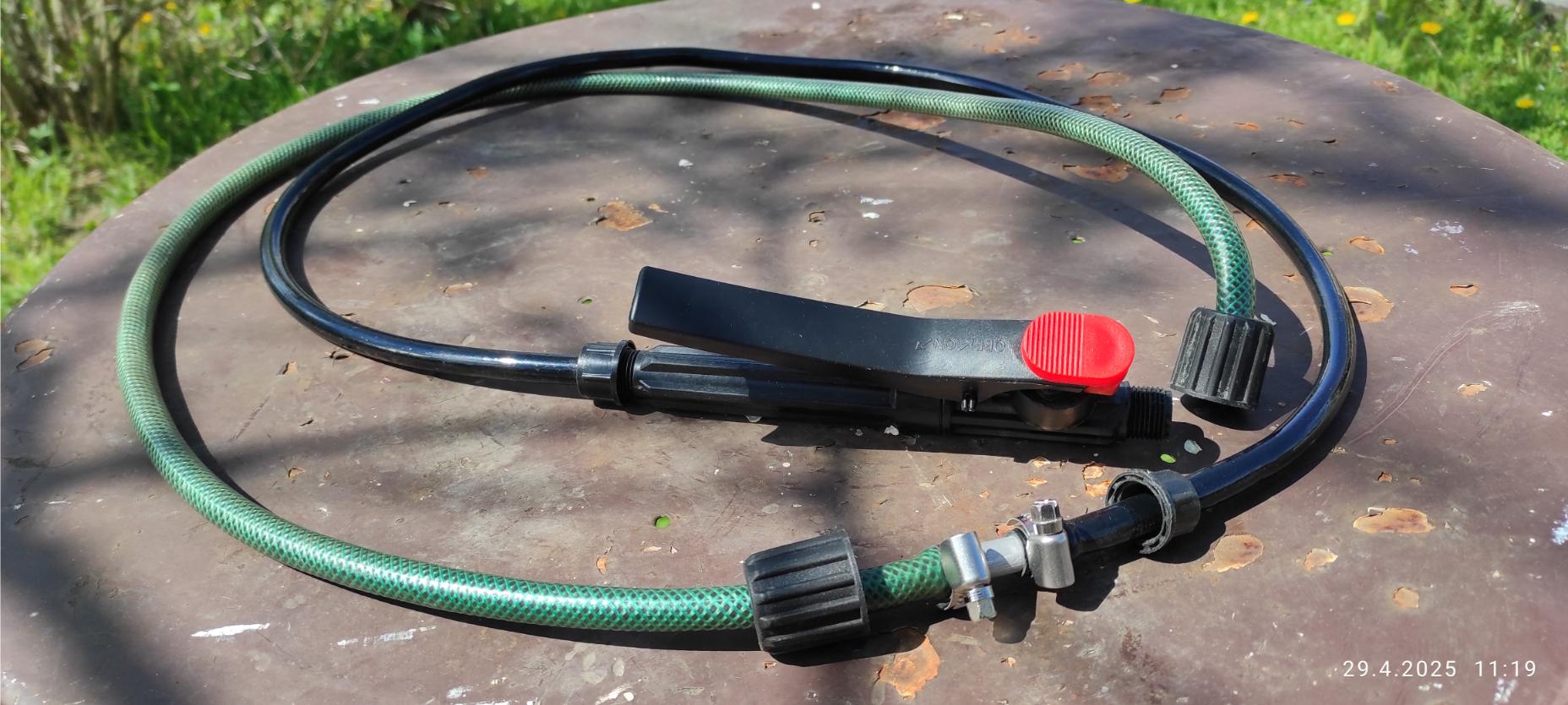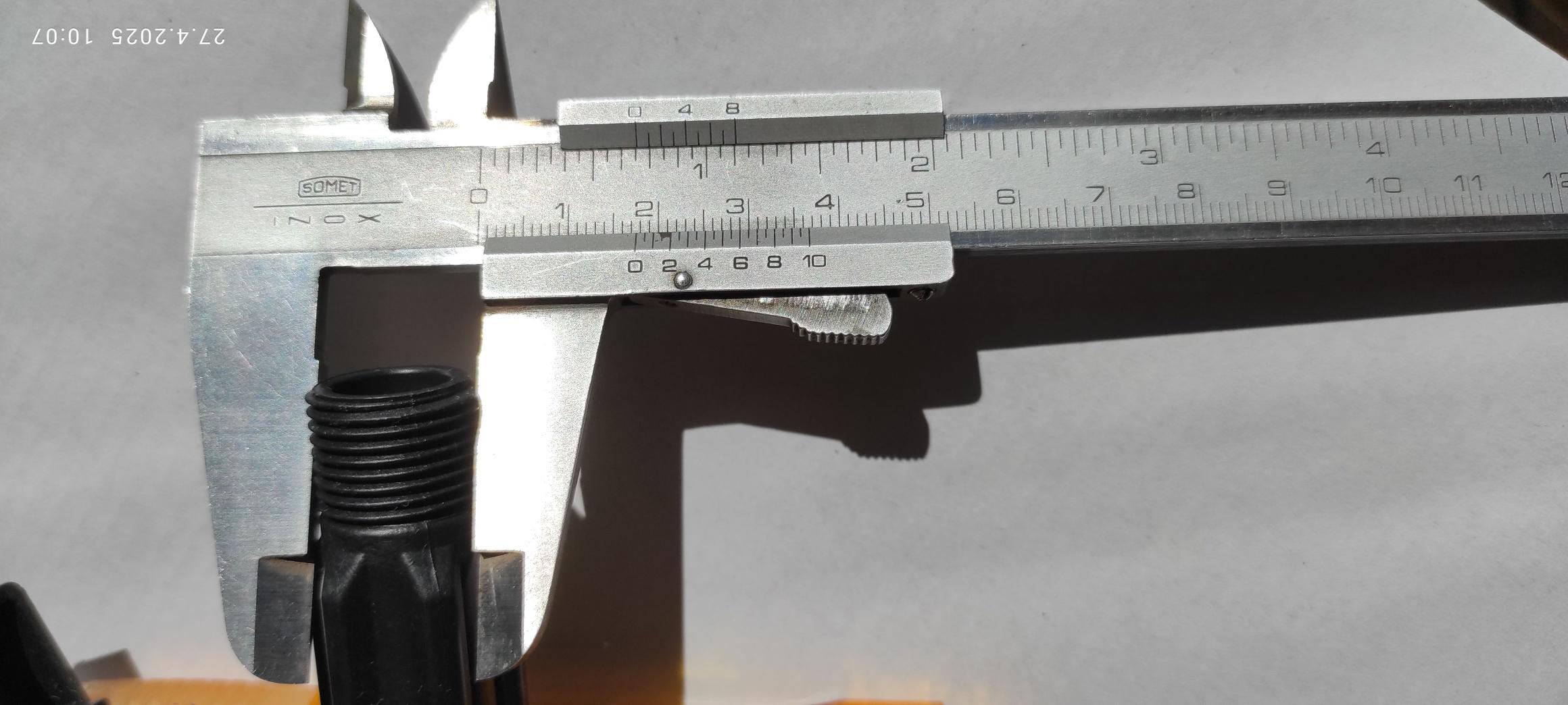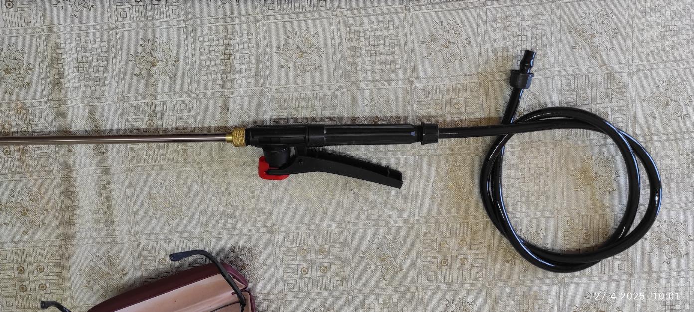 Zdravím všechny přítomné. Před léty koupil tchán tento postřikovač GDM ROSY 12. Za ta léta již udělal velkou službu a stále funguje ale má jednu nevýhodu a to je příliš krátká postřikovací tyč a my máme stromy vysoké takže jsem musel postřikovat z žebříku a to je celkem náročné zvláště když má člověk už svá léta. Sad Proto jsem pohledal na internetu (v dostupných obchodech jsem nesehnal to co by mi vyhovovalo) a objevil jsem takovouto 1,5m-3m teleskopická postřikovací tyč. Okamžitě jsem jí objednal a za dva dny jsem jí měl doma. Po vybalení mě doslova nadchla, přesně toto potřebuji ale v koutku mysle mi něco říkalo abych se dopředu neradoval a skutečně. Na mém postřikovači je závit pro připojení hadice 1/2" a na té co mi přišla je menší matice. Řekl jsem si nevadí, zajedu koupit redukci a bude vystaráno, no nebylo. 1/2" strana redukce našroubovat šla ale na tu menší matici neodpovídá žádný rozměr. Nejblíže je 3/8" - který má velký průměr 16,662mm podle tabulky a na té mojí je Ø 17,6mm takže na něm ta plastová matice nedrží.