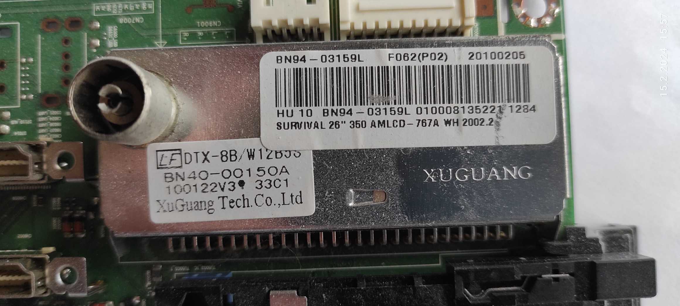 Ten od Poláka je z 32" Samsungu a můj je 26", BN41-01207C souhlasí akorát na tuneru je štítek s odlišným značením, viz přílohy. Každopádně po namontování a zapnutí se displej rozzářil. Propojil jsem TV se sat. přijímačem přes HDMI kábel a vyzkoušel oba vstupy, vše v pořádku. Pak jsem ještě vyzkoušel vstup Scart ale tu jsem byl zklamán neboť v obraze jako by byly vytrhávané řádky a zvuk šel slaběji. Vyzkoušel jsem ještě dva kabely ale nic se nezměnilo.
