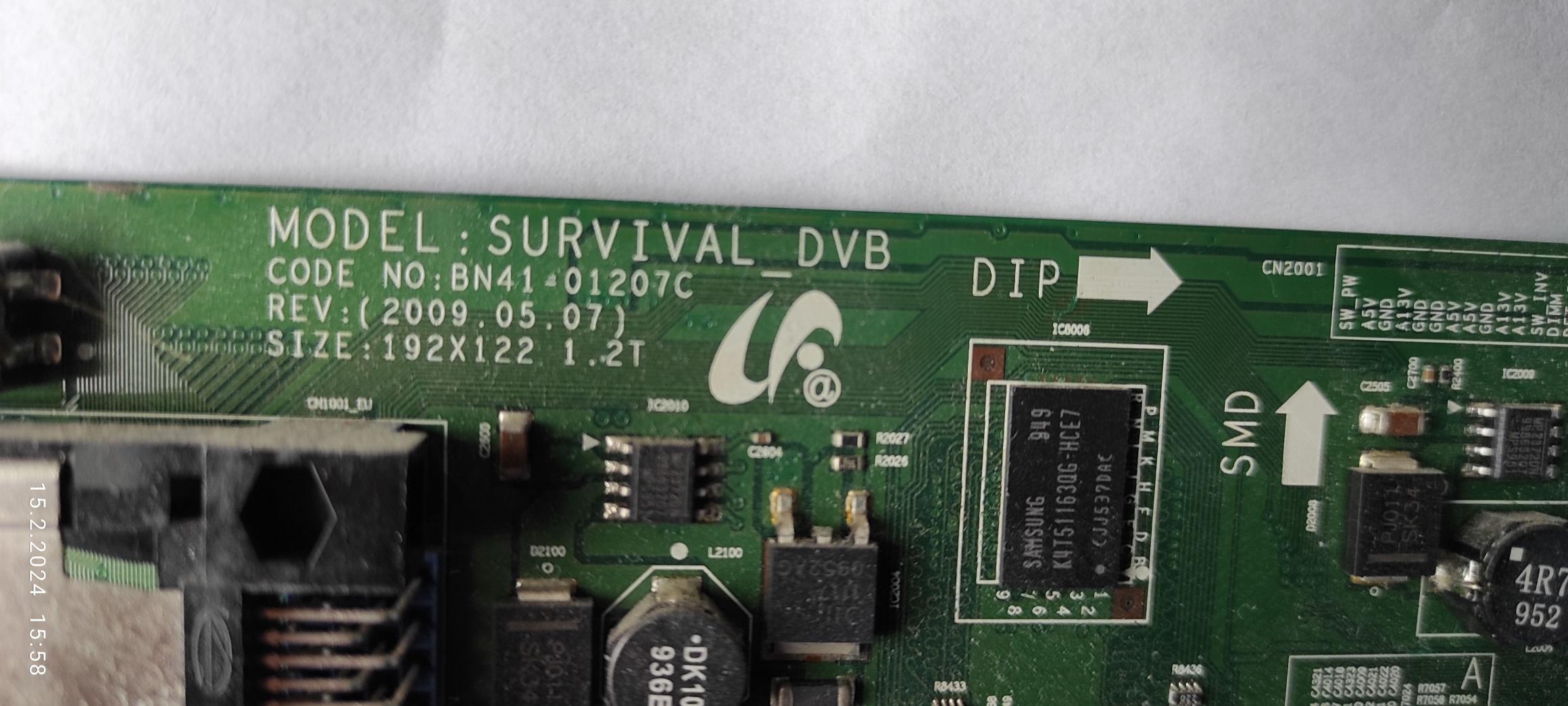 Zdravím všechny přítomné. Tento TV mi daroval soused jako nefunkční, zjistil jsem vadný MB označen BN41-01207C (jeden HDMI vstup viditelně odpálený). TV mi tu ležel již dosti dlouho a já tak spíše ze zvědavosti jsem skusil hledat funkční MB. Většinou jsem nacházel celkem drahé tyto MB na to že je to starý TV do kterého jsem nemínil moc investovat. Až u Poláků jsem natrefil na 4x levnější a tak jsem si jej nechal poslat.
