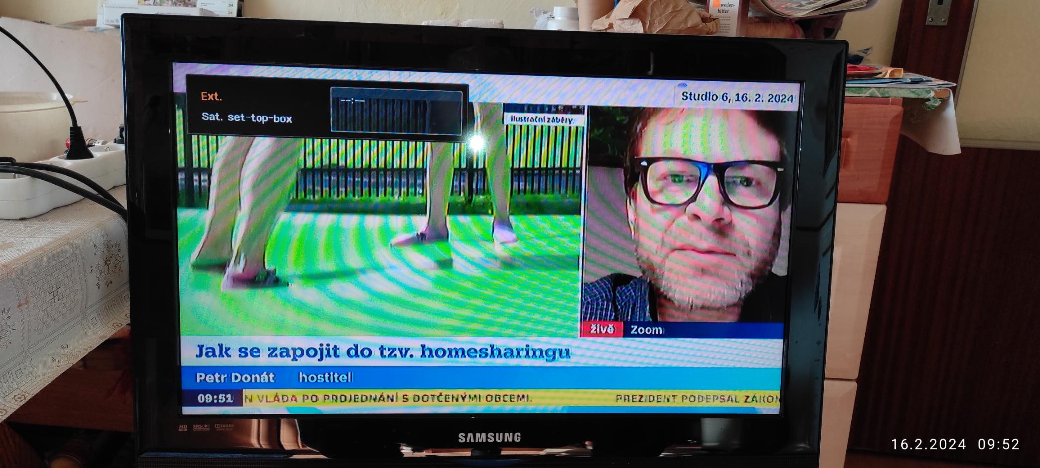 2) Odfotil jsem obrazy jak při připojení Scart tak i HDMI. Při provozu přes Scart jsou vidět "duchy" hlavně na psaném textu a na fotce se objevilo "moaré" (foceno mobilem, jinak to nebylo skoro viditelné) což bylo výraznější když na obrazovce svítil v levém horním rohu rámeček s označením vstupu, při HDMI to nedělalo.