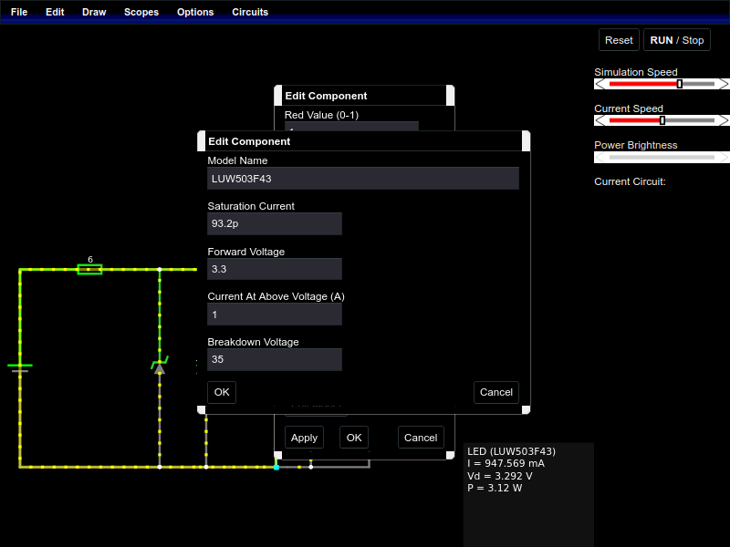Posílal jsem screenshoty a odkaz na pdf zenerky, a zmizelo to, tak nevím jestli jsem to poslal jinam nebo to bylo smazáno. Ledky nakonfigurovány, R jsem změnil na 6 ohm, kondík jsem změnil na normální kapacitu. Saturation current nevím odkud zjistit. Nestíhám číst komentáře