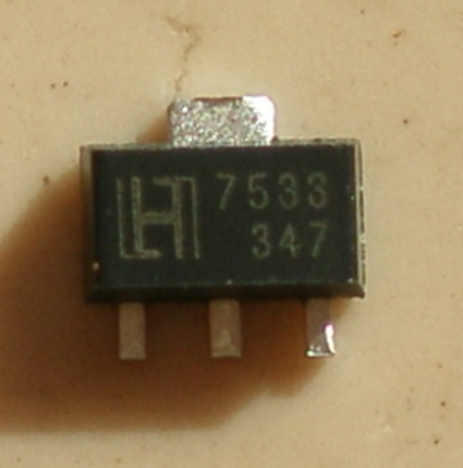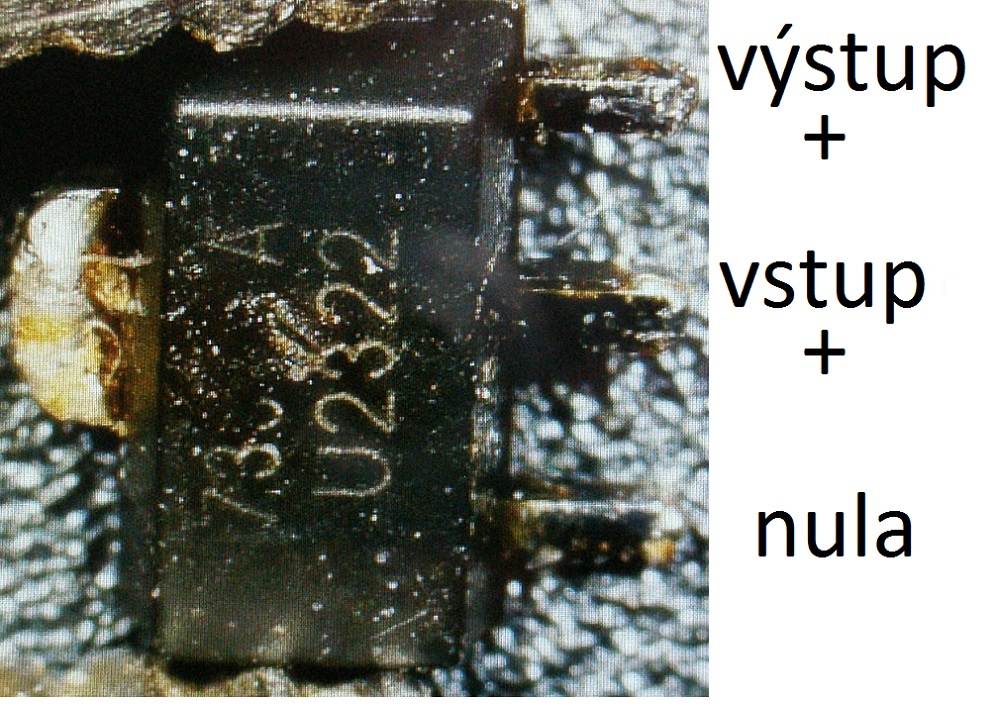 Nicméně na přívodu napájecího napětí, které může být 5-9V, je lineární stabilizátor v pouzdru SOT 89, a ten se pěkně "škvařil", takže jeho označení je čitelné jen z části, a ještě má velmi podivný pinout.