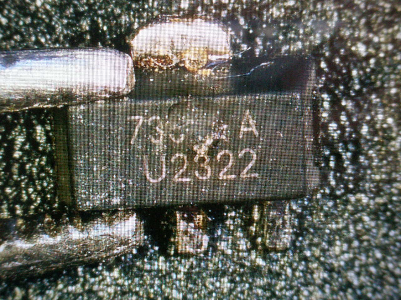 Bohužel jsem stále na půli cesty, to nejdůležitější označení mi chybí. Jestli 3,3V, nebo 5V? Myl jsem ho pomocí IPA dvakrát, ale posun není žádný. Je to bohužel v tom místě totálně vyškvařené, takže z toho nic více nepřečtu ani pod mikroskopem. Zítra to ještě jednou zkusím rozlouskat, ale nevím, nevím ...