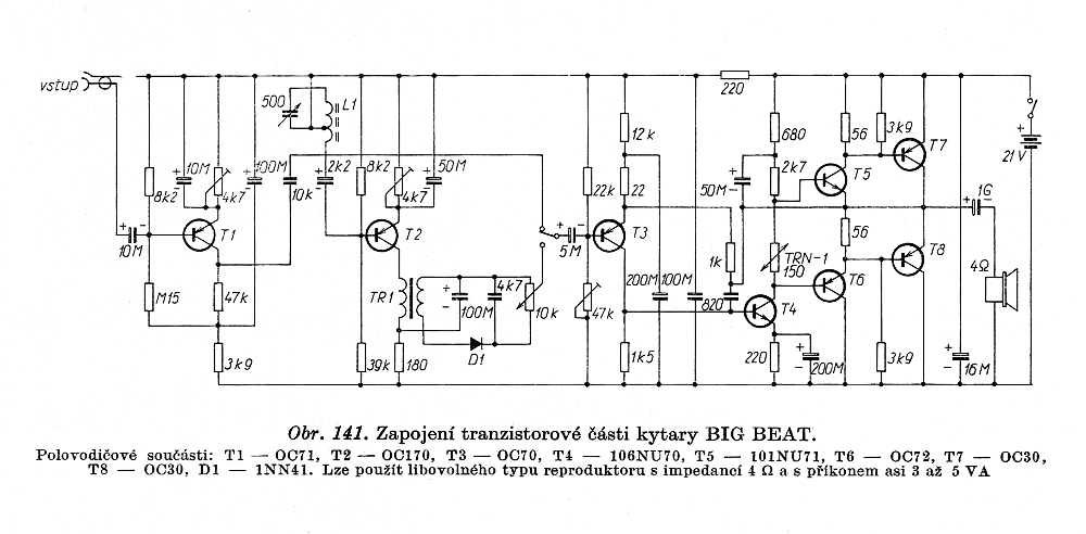 Obr. 141. Zapojení tranzistorové části kytary BIG BEAT.