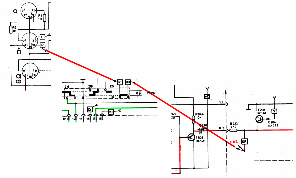 Dle schématu máš pravdu. Ale při založené kazetě při přehrávání opravdu šel výstup na oba kanály a hrálo to přes Condora. Nešel pravý indikátor. Je pravda, že pravý kanál hrál o něco slaběji.