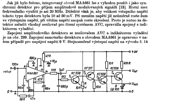 Koukám do schematu a desky PS synchrodetektoru ze Svazarmu od Hilla . Nějak mi ale nepasují vývody MAA661 na desce , konkrétně vývody 10 a 11 jsou na desce uzemněny , ve schematu chybi , u TAA661 jsou označeny jako NC. Naopak zjišťuji, že u MAA661 je vývod 4 (výstup vf zesilovače - omezovače) třeba v TV Dukla použit jako měřící bod, u TAA661 je označen jako NC . Ten by mi ani tak nevadil, není u synchrodetektoru použit , ale u těch vývodů 10 a 11 mi nepřijde košer vývody NC zemnit. Nepamatuje se prosím někdo , jak to s těmito vývody je ? Já měl MAA661 naposledy v ruce někdy v roce 1977 (?) . Díky za event. objasnění .