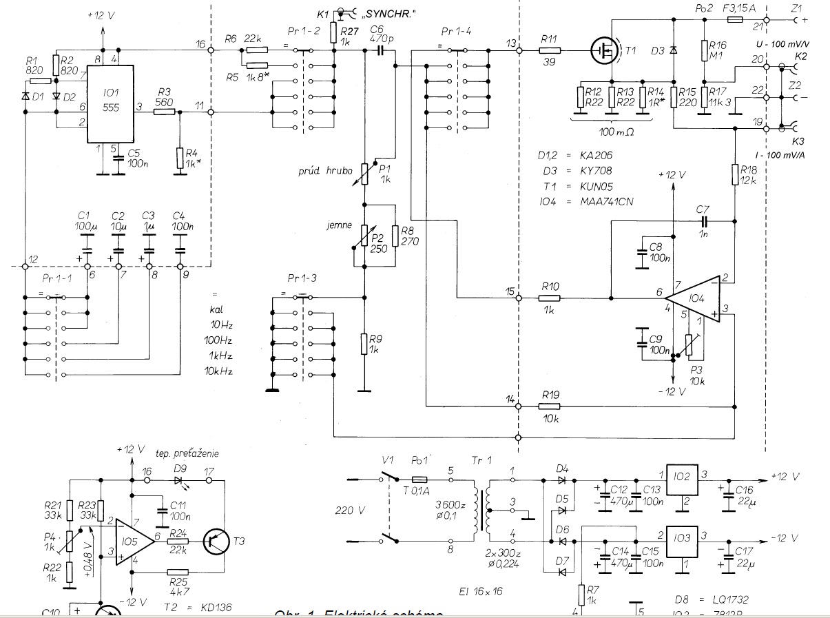 A k čemu si myslíš, že tam je ta 555? Nejdřív se krátce nastaví požadovaný stejnosměrný proud v poloze přepínače KAL a potom se kmitočtem 10Hz, 100Hz, 1KHz a 10KHz zkouší dynamický chování zkoumanýho zdroje.
